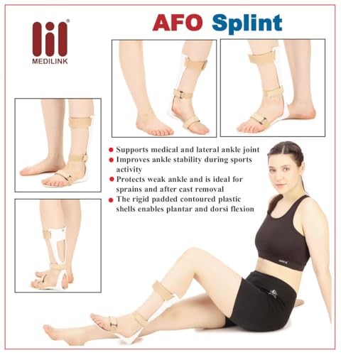 Medilink AFO Brace -Ankle Foot Orthosis support - foot drop splint- Drop Foot Postural Correction Brace- long foot plate (Right - Large)